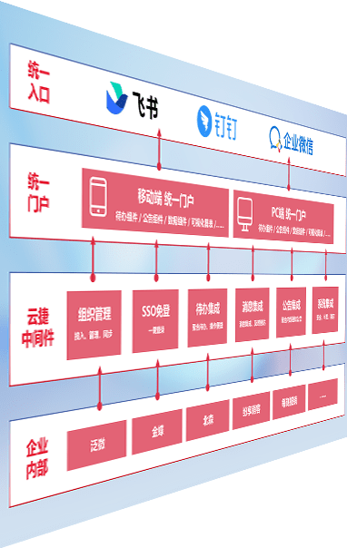 对协作平台提供支持服务,,支持企业应用与协作平台对接,,,,包含组织同步、、、消息集成、、、待办集成等。。。。支持目前主流的协作平台:钉钉、、、企微和飞书。。